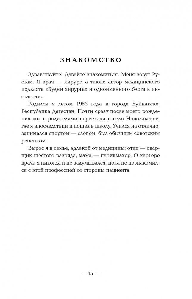 Книга написана автором топового подкаста «Будни хирурга», посвященного медицине. Вы узнаете обо всем, что присуще ежедневной работе врача: долгая учеба в университете, постоянное совершенствование знаний и умений, первые шаги в профессии, долгие ночные дежурства, странные и трагичные случаи. Вы погрузитесь в особый мир хирургического отделения и узнаете, насколько непростой бывает профессия, даже если она — твое истинное призвание.