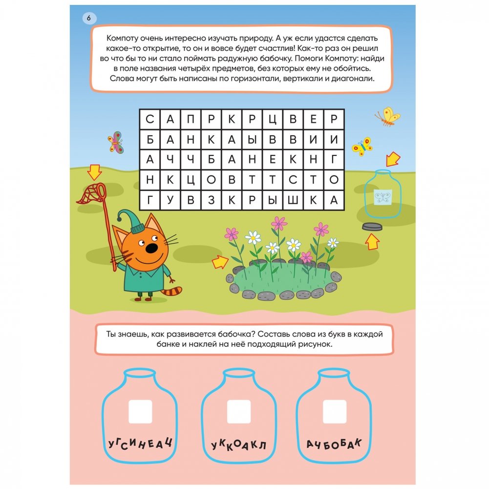 Большой формат, много заданий и наклеек и любимые герои мультсериала «Три кота» — вот идеальное сочетание, которое надолго увлечет любого ребенка. На каждой странице книги «Времена года» серии «Три кота. 250 наклеек» ребенок найдет интересные задания на тему сезонных изменений; все их нужно будет решить с помощью наклеек. Пусть это не так просто, но очень увлекательно! А приклеив все 250 наклеек, можно проверить себя, в конце спрятаны ответы на все головоломки. Логика, внимание, память — всестороннее развитие мышления вместе с Коржиком, Карамелькой и Компотом. Миу-миу-миу!