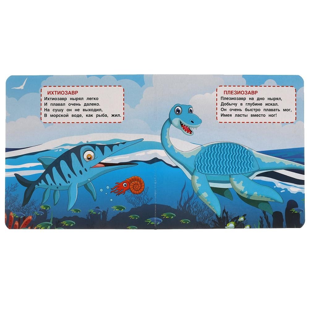 Эта необычная книга удивит ребёнка оригинальным дизайном с тактильными вставками, которые можно потрогать и погладить. Малыш с удовольствием будет читать вместе с родителями об удивительных древних ящерах и играть с тактильными элементами. Благодаря компактному размеру книжку удобно брать с собой в дорогу.