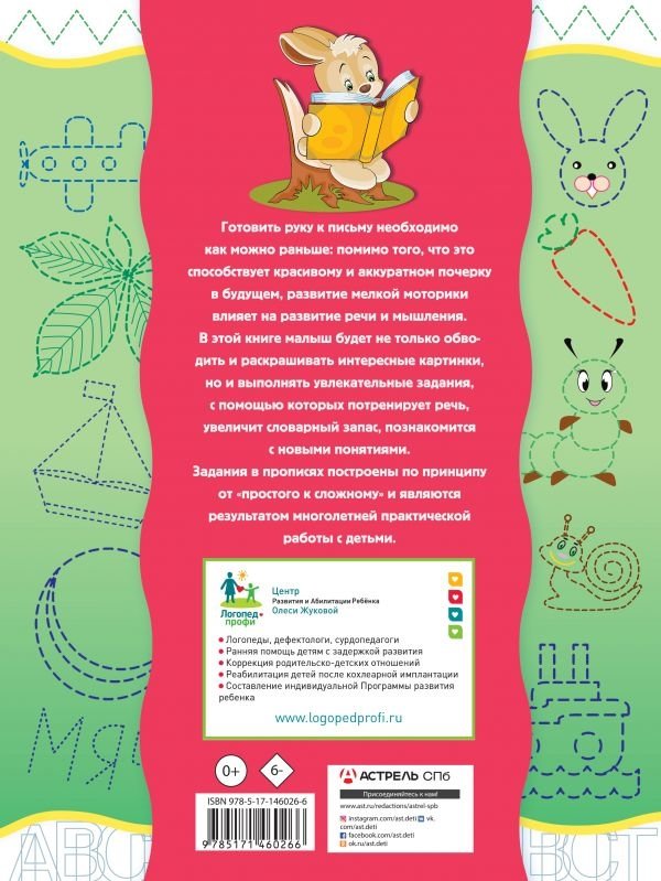 Занимаясь по этим прописям, ваш малыш научится уверенно держать карандаш и ориентироваться на листе бумаги, разовьет глазомер и мелкую моторику. Материал в книге расположен по принципу «от простого к сложному»: сначала ребенок будет обводить и штриховать веселые картинки, затем потренируется в написании слов и простых предложений. Попутно юный ученик пополнит словарный запас, разовьет речь, мышление и воображение.