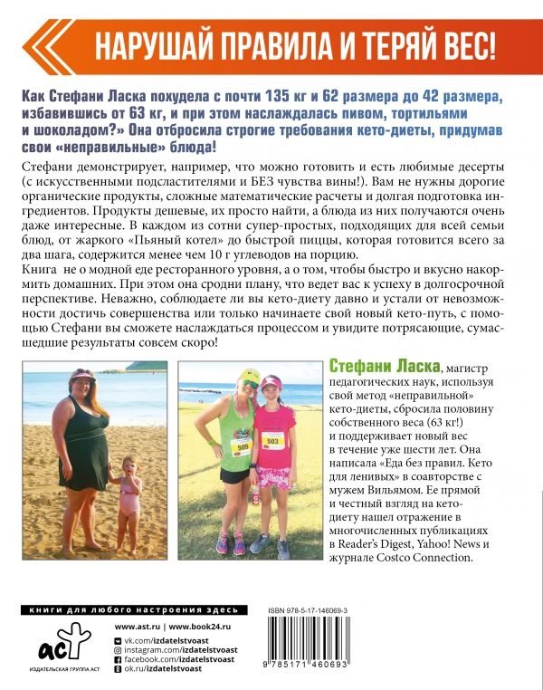 Стефани демонстрирует, например, что можно готовить и есть любимые десерты (с искусственными подсластителями и БЕЗ чувства вины!). Вам не нужны дорогие органические продукты, сложные математические расчеты и долгая подготовка ингредиентов. Продукты дешевые, их просто найти, а блюда из них получаются очень даже интересные. В каждом из сотни супер-простых, подходящих для всей семьи блюд, от жаркого «Пьяный котел» до быстрой пиццы, которая готовится всего за два шага, содержится менее чем 10 г углеводов на порцию.