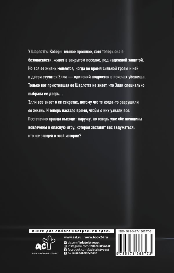 У Шарлотты Коберн темное прошлое, хотя теперь она в безопасности, живет в закрытом поселке, под надежной защитой. Но вся ее жизнь меняется, когда во время сильной грозы к ней в двери стучится Элли - одинокий подросток в поисках убежища. Только вот приютившая ее Шарлотта не знает, что Элли специально выбрала ее дверь…
