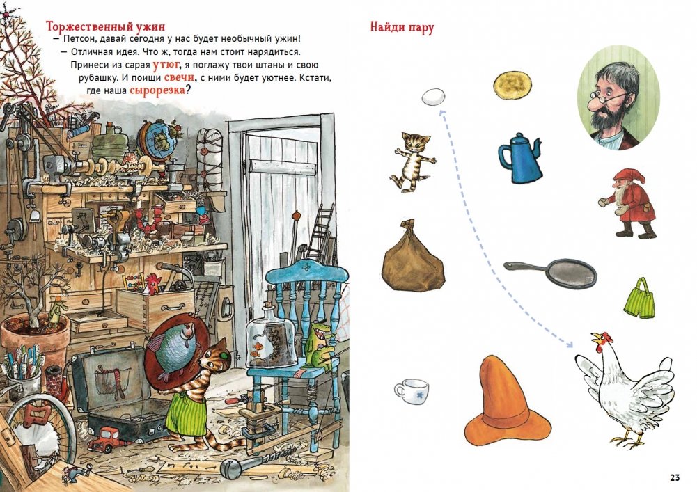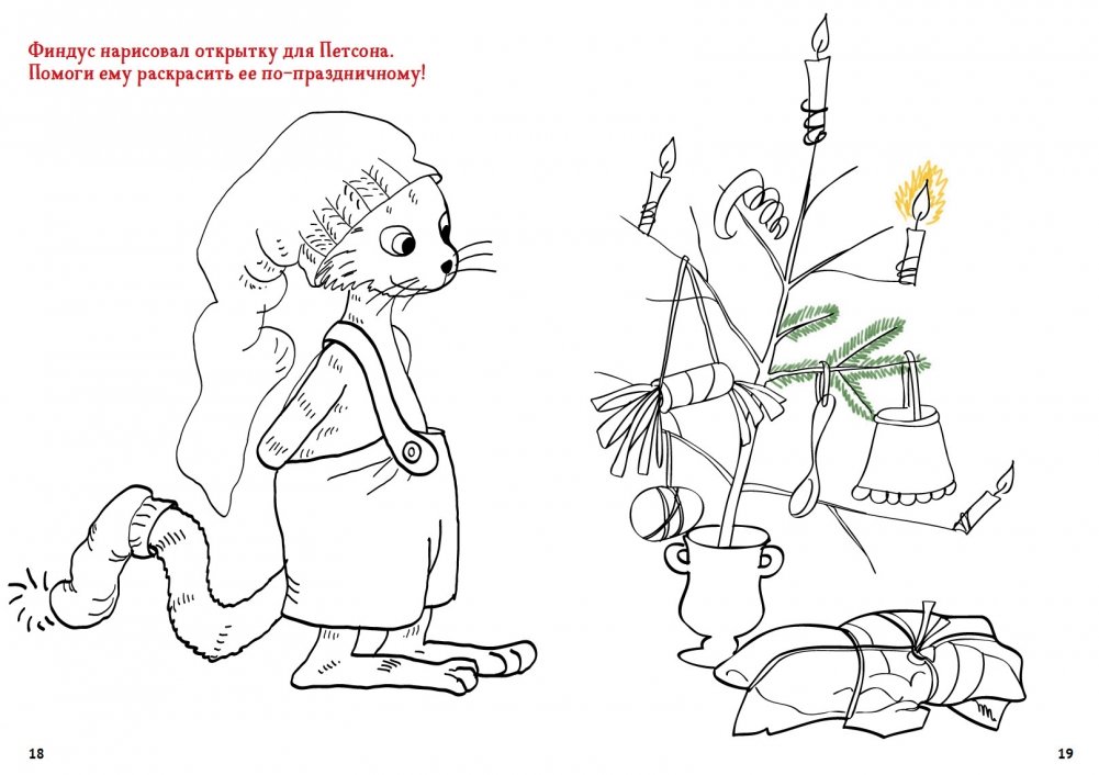 Все иллюстрации и задания соответствуют праздничной тематике. Также доступны книги «Петсон и Финдус решают кроссворд» и «Петсон и Финдус. Книжка с заданиями и наклейками!»