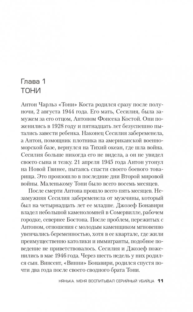 Бурные 1960-е, время хиппи, рок-н-ролла и наркотиков. У маленькой Лайзы не самая лучшая мать. Девочка слышит от нее только ругань и пренебрежение, а сама мама больше озабочена поиском новых мужчин, чем воспитанием дочери. Но все меняется, когда в их семье появляется "нянька" — дружелюбный разнорабочий Тони Коста, который иногда присматривает за Лайзой и ее младшей сестренкой. С ним впервые Лайза не чувствует себя никчемной и думает, что Тони — отличный парень. Но чего она не знает: ее "нянька" на самом деле — серийный убийца. Тони Коста, прозванный "плотником-убийцей" и "Джеком-Потрошителем эпохи хиппи", вел асоциальный образ жизни, убивал и расчленял девушек, с которыми близко сошелся на почве употребления наркотиков. В детстве Лайза не понимала, что загадочные убийства, о которых шепчутся взрослые — его рук дело, но повзрослев и осознав, погрузилась в расследование его убийств. Результатом стала книга — частично тру-крайм, частично собственные воспоминания, — о дружбе одинокой маленькой девочки и хладнокровного серийного убийцы.