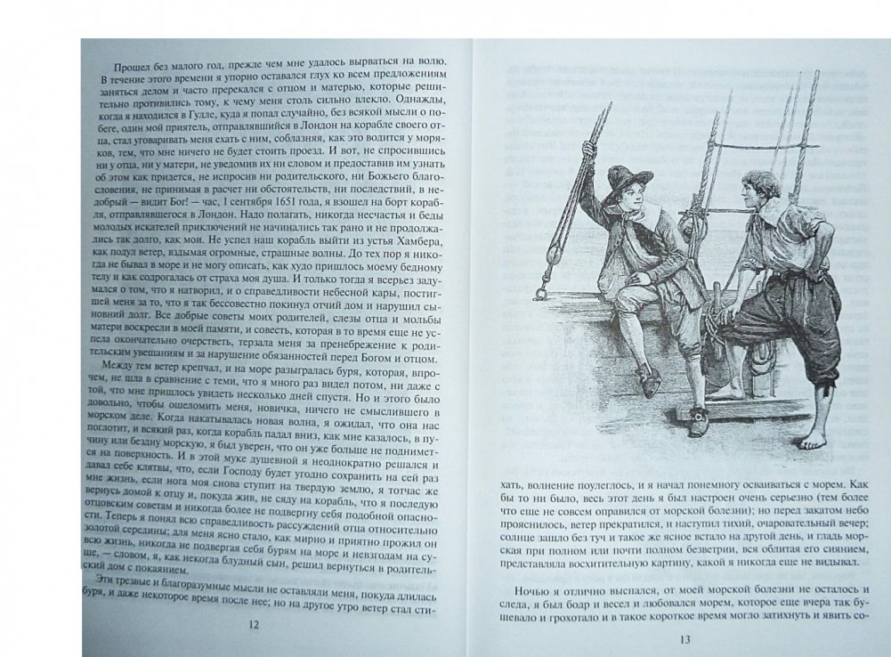 Самый знаменитый роман Дефо — «Приключения Робинзона Крузо», печатается в полной версии перевода М. Шишмаревой, выполненном в 1902 году.
