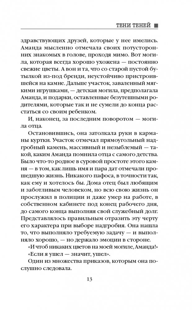 Все вы встречали таких подростков, как Чарли Крабтри. Темное воображение, зловещая улыбка, всегда сам по себе… Кажется, этот парень способен на нечто очень плохое. Именно это и сделал Чарли двадцать пять лет назад – совершил убийство, настолько шокирующее, что даже вдохновил ряд подражателей. Сам же Крабтри бесследно исчез… как тень. Все эти годы Пол Адамс пытался стереть из памяти произошедшее: ведь и убийца, и жертва были его друзьями. Но теперь, когда его мать при смерти, Полу приходится вернуться в родной городок. И тени прошлого начинают оживать… Сначала происходит одно схожее убийство, потом другое. А потом Пол находит в своем доме странные – и страшные – знаки…