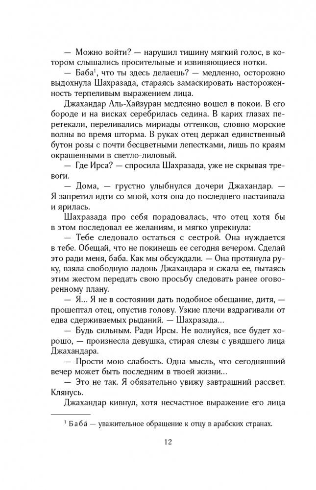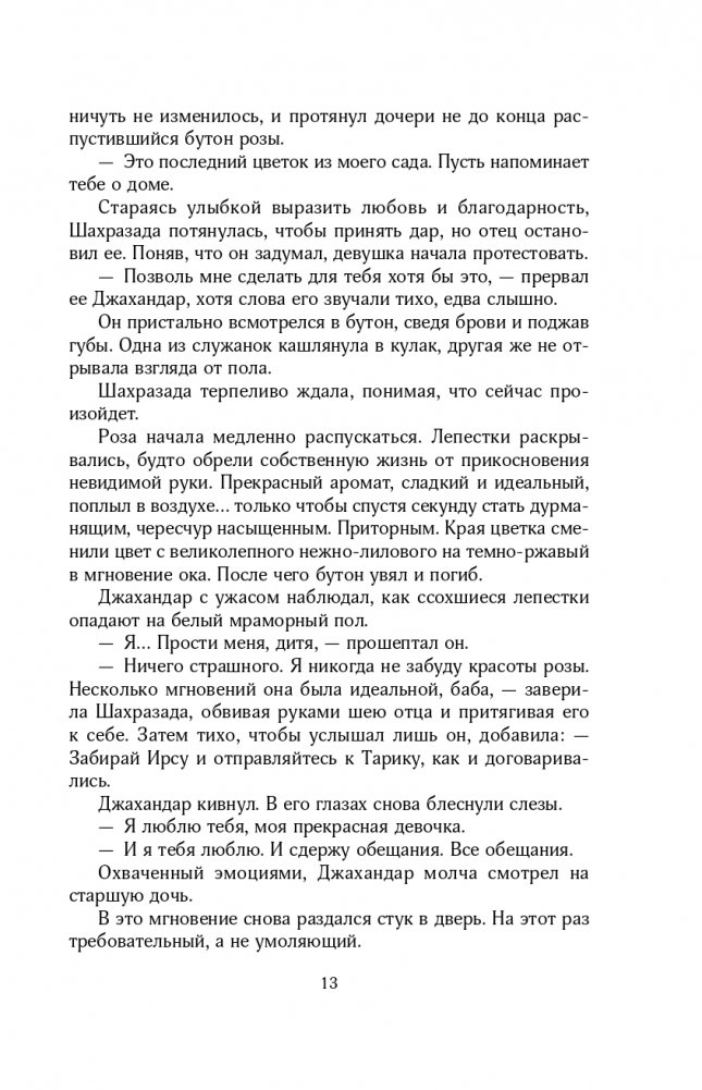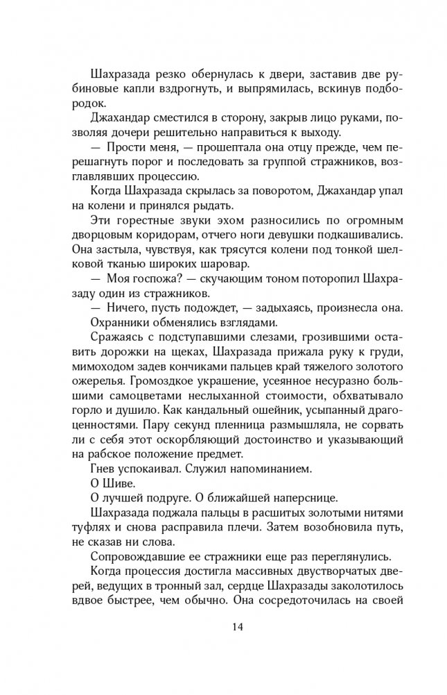 В королевстве Хорасан правит безжалостный халиф. Каждый день он берет в жены новую девушку и казнит ее на рассвете. После гибели единственной подруги шестнадцатилетняя Шахразада клянется, что отомстит тирану. Чтобы убить кровавого правителя, она добровольно соглашается стать его невестой. Но сначала Шахразаде нужно придумать, как избежать собственной гибели. Она рассказывает халифу историю за историей, обрывая их на интересном месте. Вскоре девушка начинает догадываться, что за жестокостью халифа скрывается страшная тайна. Шахразада проникается сочувствием к нему и хочет разорвать порочный круг смерти. Сможет ли любовь восторжествовать в мире, наполненном ненавистью, ложью и предательством?