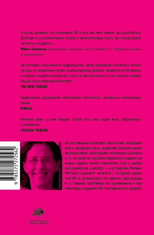 За 65 лет, прошедших после Дартмутского семинара, который положил начало разработке искусственного интеллекта, в этой области совершено множество прорывов, однако до создания машины с “человеческим” интеллектом по‑прежнему далеко. Сегодня ИИ распознает изображения и переводит речь, управляет беспилотными автомобилями, обыгрывает человека в шахматы и го, но пока не способен переносить навыки на новые задачи, может перепутать соль с дорожной разметкой, а автобус — со страусом. Мелани Митчелл, одна из ведущих ученых-информатиков, знакомит читателя с историей развития ИИ и принципами его работы, рассказывает о главных проблемах его применения и перспективах создания ИИ “человеческого уровня”.