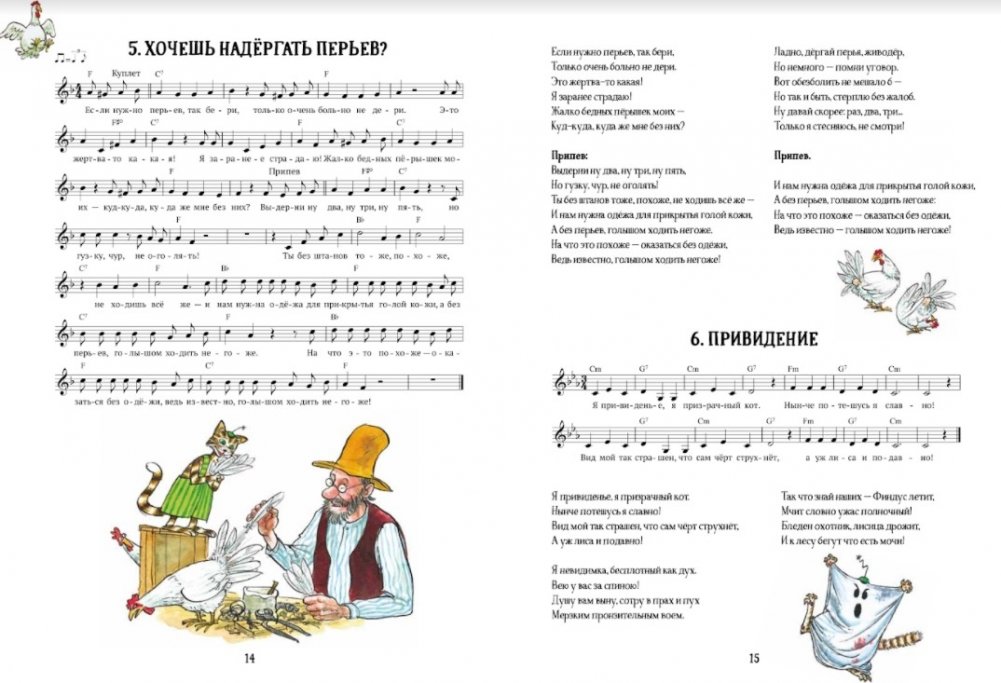 Петсон, Финдус и другие герои Свена Нурдквиста вновь поют и пляшут! Хотите вместе с ними исполнить картофельный рок, лисий блюз или колыбельную для Финдуса? В этом сборнике - 24 песни с нотами для фортепьяно и аккордами для гитары! Идея сочинить песни по мотивам книг о Петсоне и Финдусе родилась у шведского музыкального коллектива "Братья Слют", возглавляемого музыкантом и композитором Свеном Хедманом. Песни можно не только разучить на гитаре или фортепьяно, но также послушать или скачать на музыкальных сервисах Spotify, Apple Music, Youtube Music, Яндекс.Музыка, ВКонтакте и др.