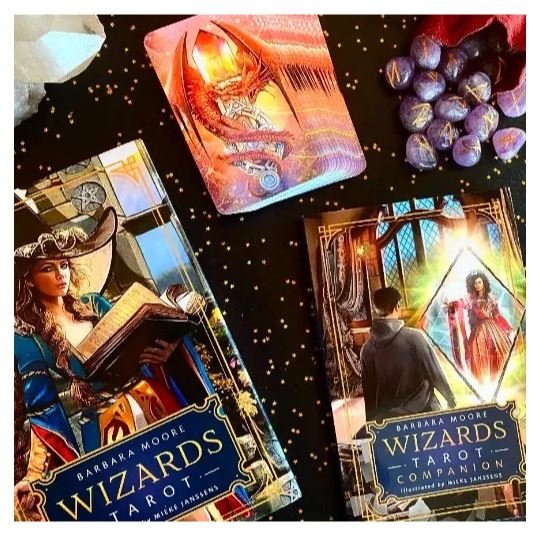 Magic users of many paths will love this breathtaking deck filled with adepts, spellcasters, boundless power, and deep mysteries. Each card comes to life in vibrant splashes of color and explosive displays of incredible magic. These wizards will delight you with every flip of the cards. So raise your sword, wave your wand, tip your cup, and draw your pentacle with this irresistible, Rider-Waite-Smith-based deck and full-color guidebook.