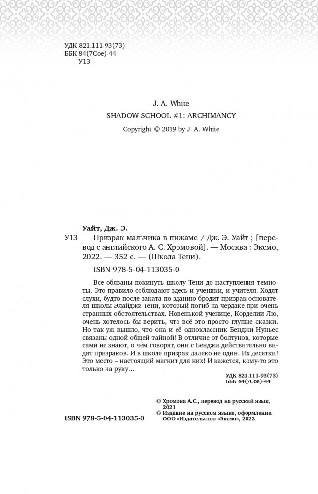 Все обязаны покинуть школу Тени до наступления темноты. Это правило соблюдают здесь и ученики, и учителя. Ходят слухи, будто после заката по зданию бродит призрак основателя школы Элайджи Тени, который погиб на чердаке при очень странных обстоятельствах. Новенькой ученице, Корделии Лю, очень хотелось бы верить, что всё это просто глупые сказки. Но так уж вышло, что она и её одноклассник Бенджи Нуньес связаны одной общей тайной! В отличие от болтунов, которые сами не знают, о чём говорят, они с Бенджи действительно видят призраков. И в школе призрак далеко не один. Их десятки! Это место – настоящий магнит для них! И кажется, кому-то это только на руку…