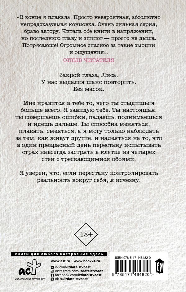 Мне нравится в тебе то, чего ты стыдишься больше всего. Я завидую тебе. Ты настоящая, ты совершаешь ошибки, падаешь, поднимаешься и идешь дальше. Ты способна меняться, плакать, смеяться, а я могу только наблюдать за тем, как живут другие, и надеяться на то, что в один прекрасный день перестану испытывать страх навсегда застрять в клетке из четырех стен с трескающимися обоями.