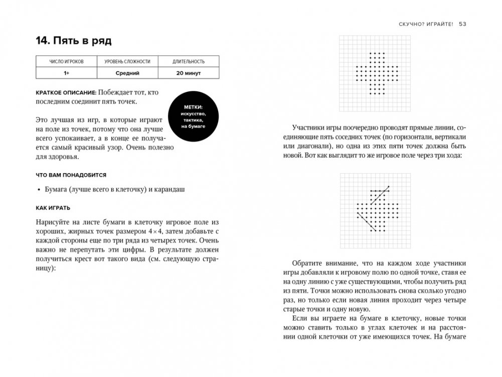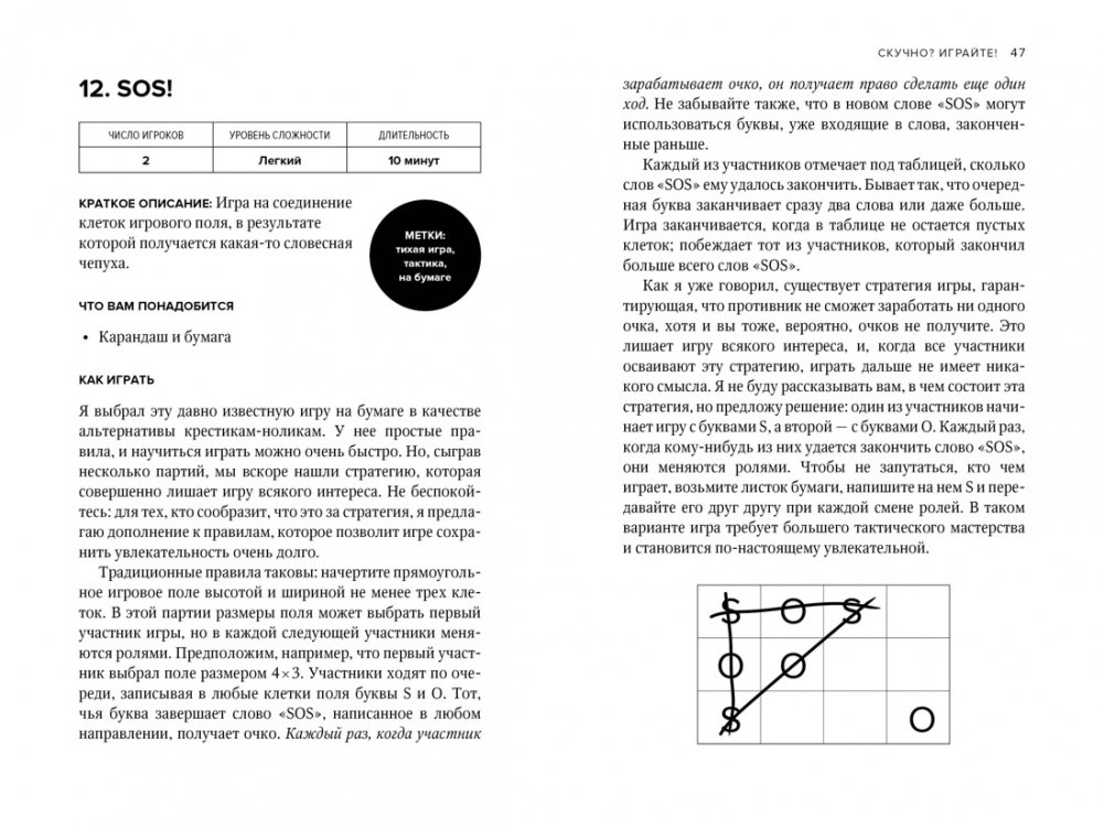 «Я провел последние два года, коллекционируя, создавая и отбирая самые лучшие возможности для игры, чтобы увлечь и вас тоже. Поскольку я не могу в самом деле сыграть с вами в эти игры — что, несомненно, было бы лучше всего, — я изложил их правила в самой простой и забавной форме, чтобы вы могли приступить к игре практически без обучения, подготовки и сбора каких бы то ни было материалов. Выбирайте подходящий для вас раздел и начинайте играть!»
