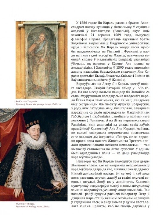 Выданне апісвае лёс выбітнага вайсковага і дзяржаўнага дзеяча Вялікага княства Літоўскага, таленавітага палкаводца XVII стагоддзя, прадстаўніка старажытнага магнацкага роду Яна Караля Хадкевіча, які прысвяціў сваё жыццё Радзіме, упарта адстойваючы яе суверэнітэт у складзе Рэчы Паспалітай.