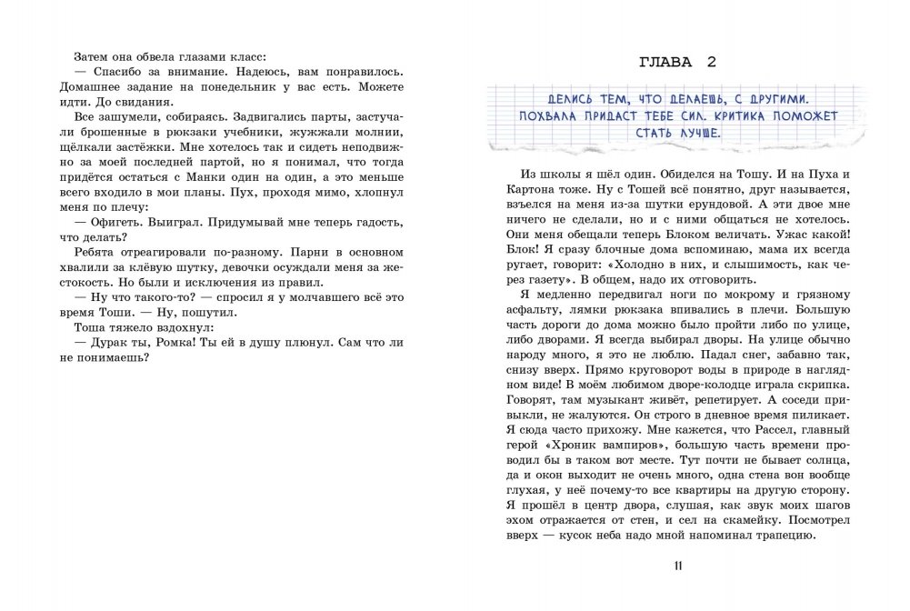 Теперь ему приходится жить с постоянным чувством вины. Ему трудно с этим справиться. Он запоем читает "Хроники вампиров", пишет фанфики к любимым книгам, ввязывается в дурацкие пари и мучается угрызениями совести. Где же выход из сложившейся ситуации, и кто поможет Ромке его найти?