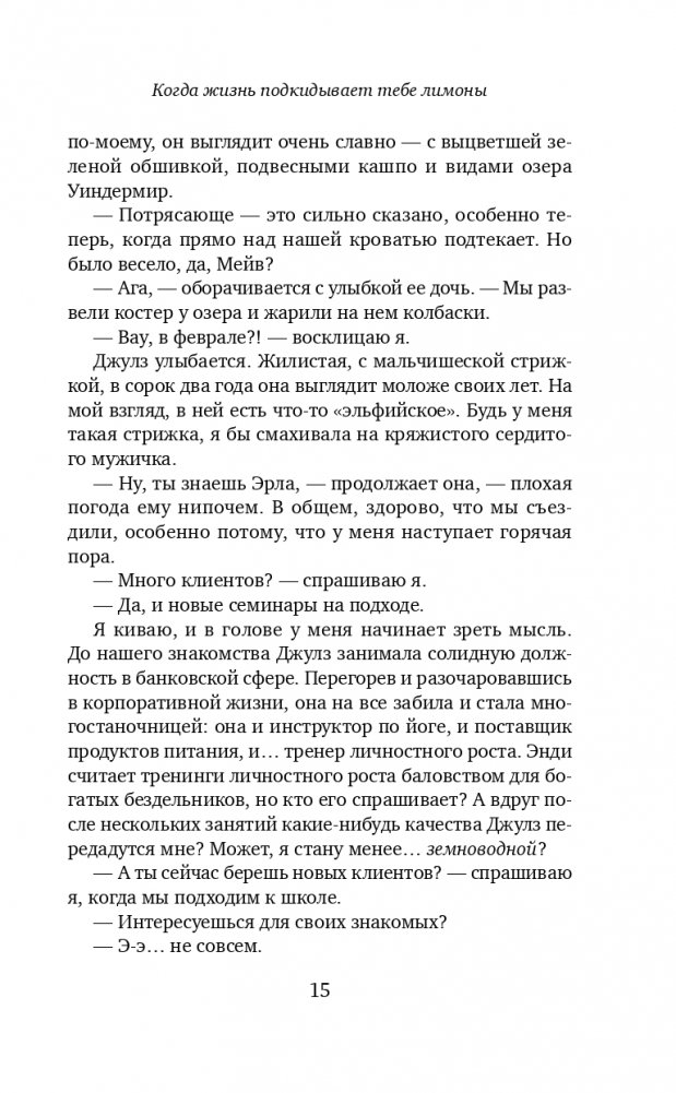 Сдаваться – не в правилах Вив. Ей слегка за пятьдесят, а ее жизнь – настоящая мечта: двое замечательных детей, муж с блестящей карьерой, работа и уютный дом. Но в один день все рушится за считаные минуты – муж изменил ей. Брак уже не спасти. Развод, переполох на работе, бушует климакс. Каждый день жизнь заставляет ее проходить все новые и новые испытания. Но Вив знает: если жизнь подкидывает лимоны – сделай из них лимонад. И, главное, не забудь джин и тоник.