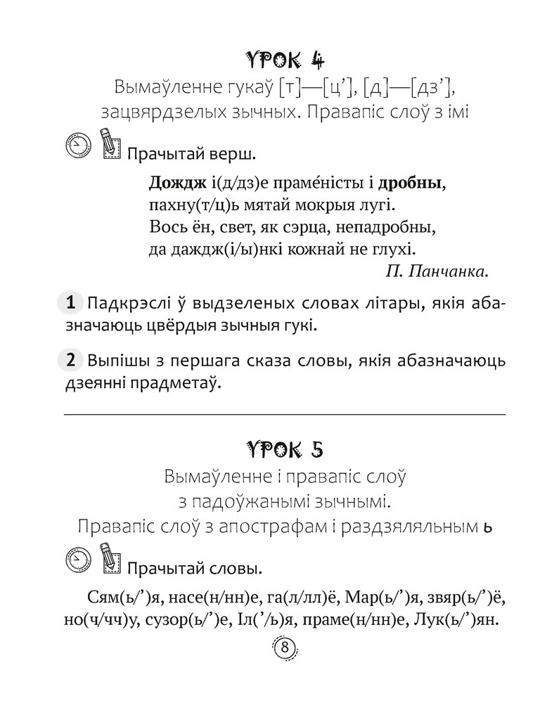 Дапаможнік змяшчае арфаграфічныя размінкі, якія ахопліваюць увесь моўны курс, прадугледжаны вучэбнай праграмай для 3 класа. Размінкі распрацаваны да кожнага ўрока і ўключаюць тэксты, на аснове якіх выконваюцца практыкаванні розных тыпаў. Заданні разлічаны прыкладна на 5 хвілін самастойнай работы.