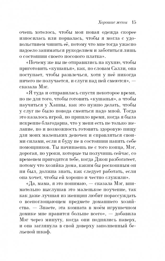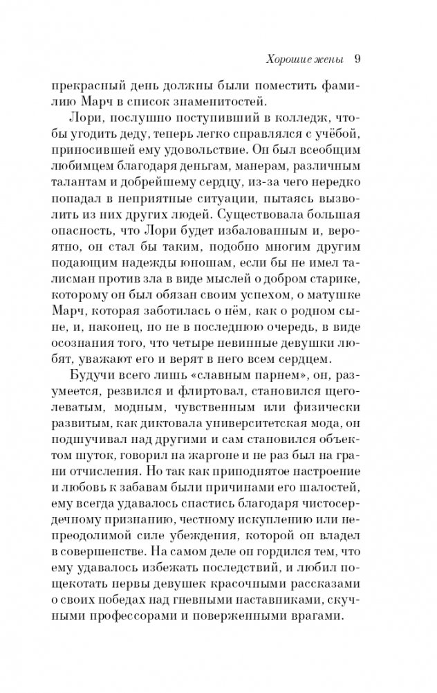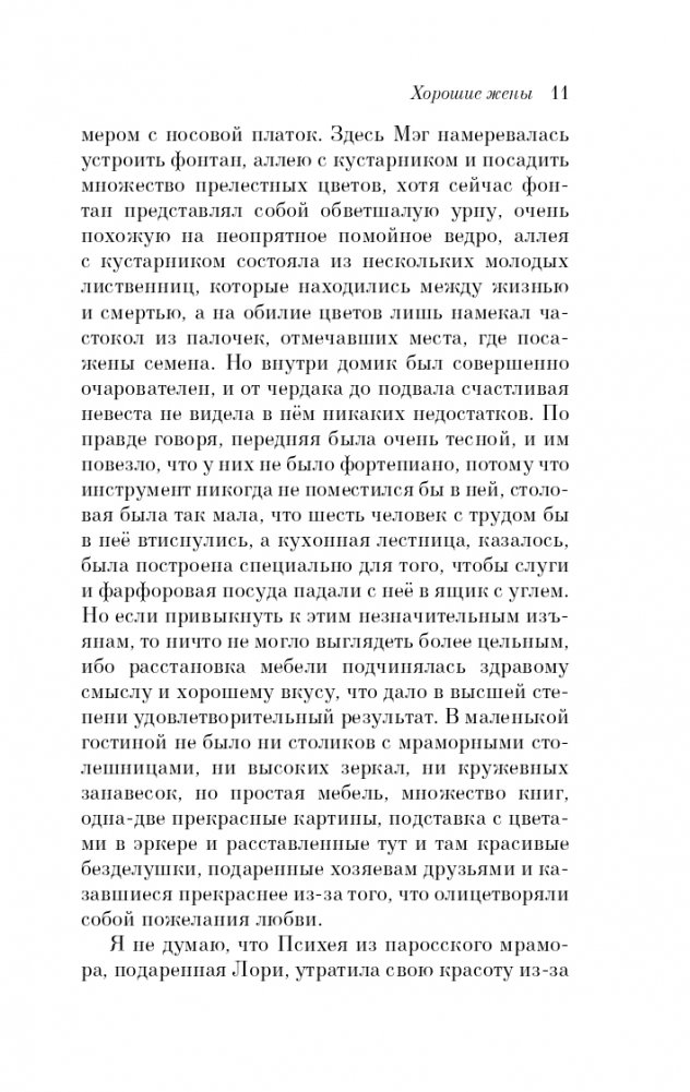 Прежде чем стать всемирно известным автором литературы для юношества, Луиза Мэй Олкотт (1832-1888) работала медсестрой во время Гражданской войны, боролась с рабством, была одной из первых участниц движения за предоставление женщинам избирательных прав. Начав писать детские книги, достигла небывалой славы и богатства. Она смотрела на мир и писала о нем так же, как жила, — с верой в будущее, с любовью и состраданием к людям. Верность жизненной правде и высоким идеалам, юмор и неугасимый оптимизм, присущие ее творчеству, всегда будут привлекать к ее книгам юных и взрослых читателей. "Хорошие жены" - продолжение "Маленьких женщин", искреннего и трогательного романа о детстве и юности четырех сестер. Маргарет, Джо, Бесс и Эми такие разные, такие неповторимые. Они сообща справляются с трудностями, испытывают горести и радости, мечтают о будущем и проходят непростой путь взросления. А став взрослыми девушками, сталкиваются с новыми заботами. Живо и увлекательно описывая их судьбу, Олкотт снова вселяет веру в людей и человеческие чувства.