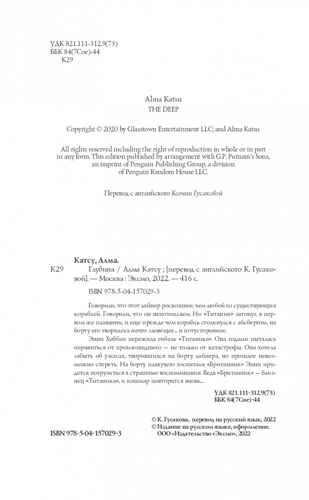 Говорили, что этот лайнер роскошнее, чем любой из существующих кораблей. Говорили, что он непотопляем. Но "Титаник" затонул в первом же плавании, и ещё прежде, чем корабль столкнулся с айсбергом, на борту его творилось нечто зловещее... и потустороннее. Энни Хеббли пережила гибель "Титаника". Она годами пыталась оправиться от произошедшего – не только от катастрофы. Она хотела забыть об ужасах, творившихся на борту лайнера, но прошлое невозможно стереть. На борту плавучего госпиталя "Британник" Энни придётся погрузиться в страшные воспоминания. Ведь "Британник" – близнец "Титаника", и кошмар повторится вновь...