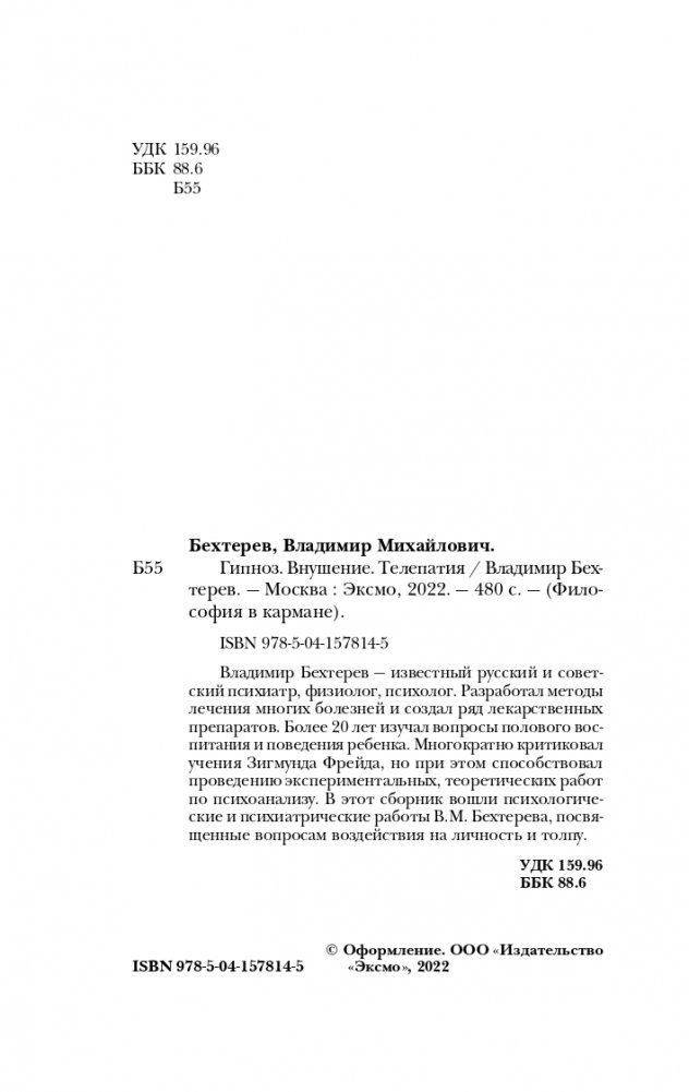 В этот сборник вошли психологические и психиатрические работы В.М. Бехтерева, посвященные вопросам воздействия на личность и толпу.