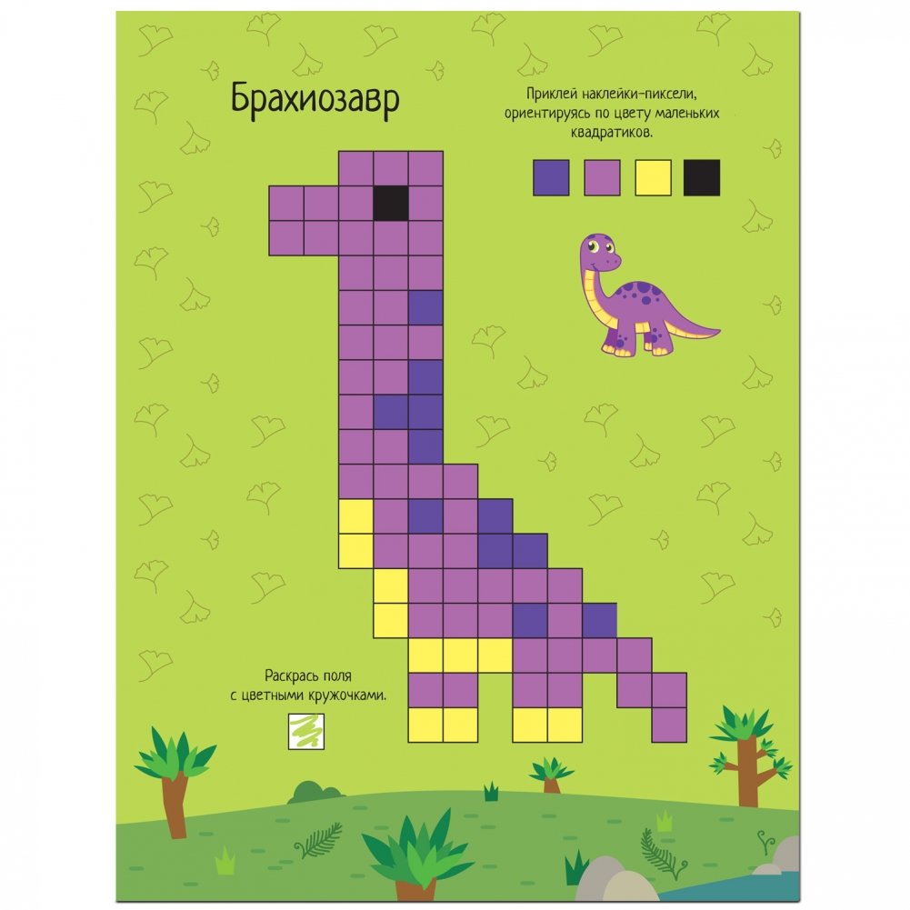 В книге «Динозавры» серии «Пиксели. Клеим и рисуем» ребенку предстоит составлять картинки по образцу из наклеек-пикселей. В книге их 780 штук! Как по волшебству, на пустой страничке появятся изображения разных динозавров. А еще нужно будет вооружиться цветными карандашами и выполнить разнообразные задания с пикселями: дорисовать картинку зеркально, по образцу или по легенде, а также продолжить ряды.