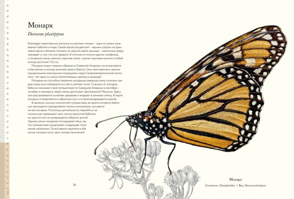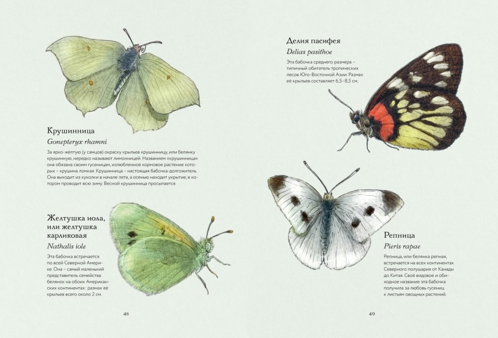 Красивые иллюстрации позволяют рассмотреть представителей разных видов в мельчайших деталях и понять их реальные размеры, а подробные описания каждой бабочки помогут вам лучше узнать о её жизни: где бабочка обитает, чем она питается, как цвет и узор её крыльев помогают ей маскироваться в природе и взаимодействовать с сородичами, и многое другое. Откройте для себя мир бабочек, хрупкий и прекрасный!