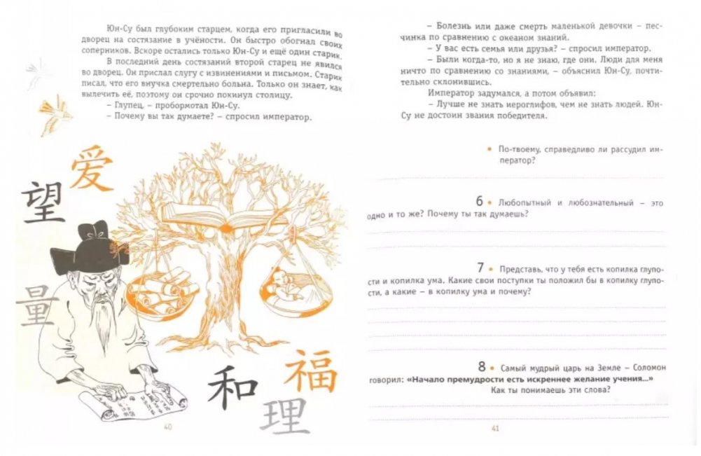 Вечные вопросы - для чего человек живёт, что такое доброта, мудрость, красота, любовь и многое другое занимают наших детей с самого детства. Помочь младшим школьникам разобраться в них призвано данное пособие, содержащее сказки, легенды, притчи разных народов. В них заключена мудрость поколений, поданная в доступной, сказочной и краткой форме. Вопросы-задания, которыми сопровождается каждое произведение, заставляют ребёнка думать, размышлять о прочитанном и собственных поступках, развивают интуицию и воображение, учат искать различные пути решения одной проблемы. Соображения по той или иной теме, записанные учащимися, делают пособие своеобразным философским дневником, к которому дети могут обращаться по мере взросления. Пособие прекрасно иллюстрировано.
