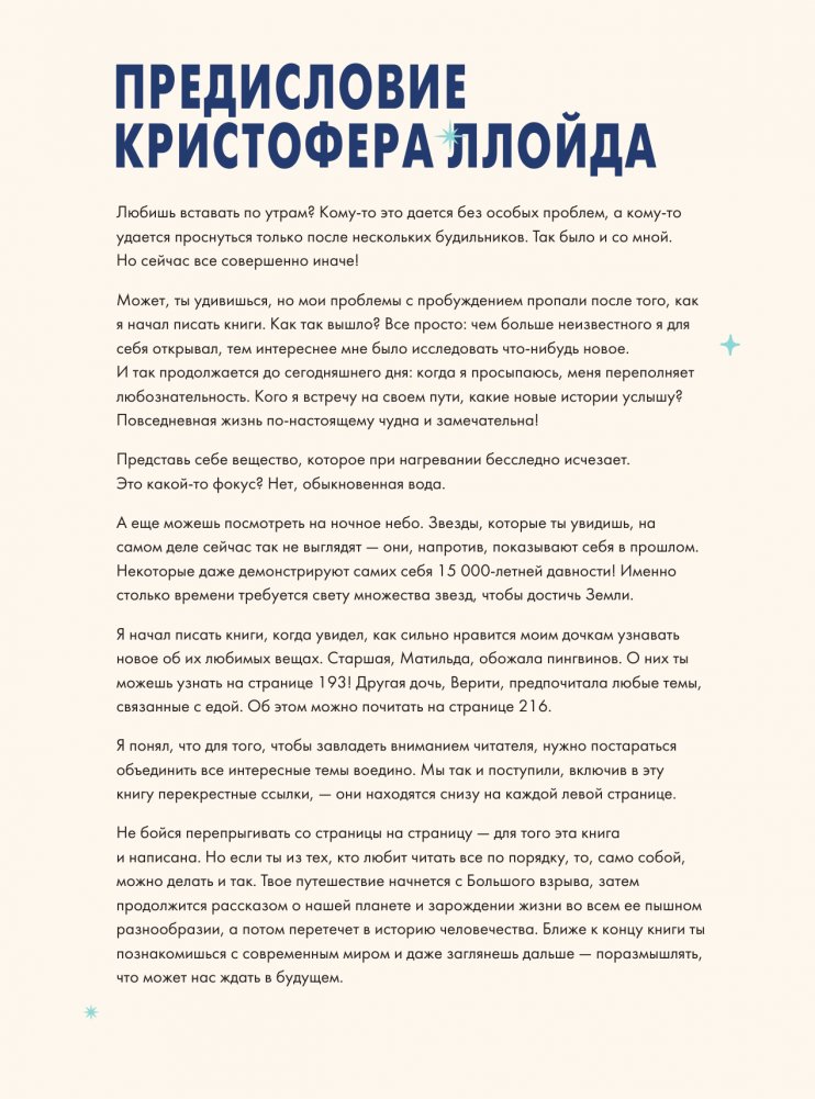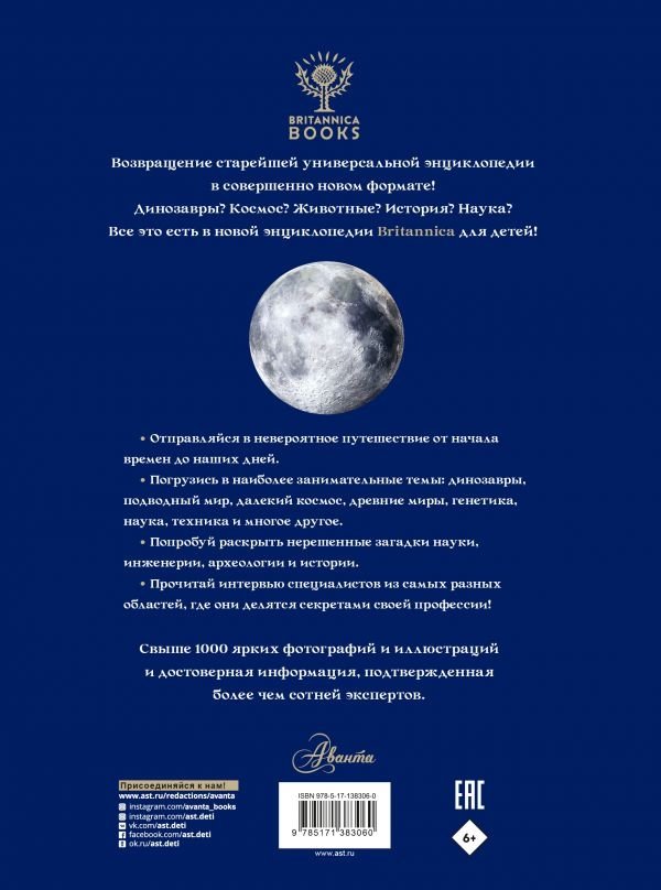 В отличие от старых энциклопедий, составленных от А до Я, эта энциклопедия отправит вас в путешествие от начала времен до наших дней — и даже позволит заглянуть в будущее! Книга разделена на восемь больших глав по темам: Вселенная и космос, планета Земля, наука, происхождение жизни, тело человека, история Древнего мира, а также новое и новейшее время. Над каждой главой новой энциклопедии Britannica трудилось огромное количество экспертов, и каждый факт в ней подтвержден специалистами.