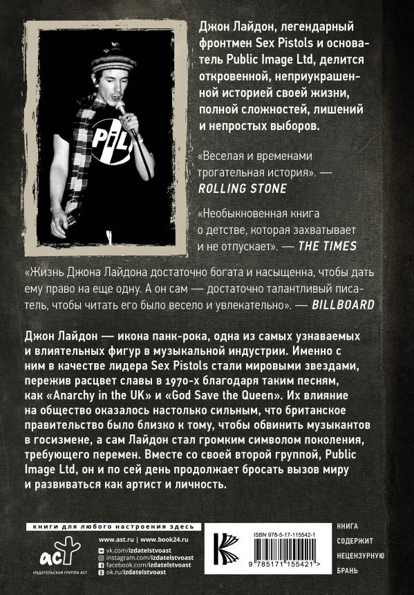 Жизнь фронтмена Sex Pistols Джона Лайдона никогда не была похожа на красочные фильмы о рок‑звёздах. Мальчик вырос в трущобах Лондона среди насилия и бедности, а музыкантом стал, скорее, в знак протеста, нежели ради денег и славы. И он не боится об этом открыто говорить. Пронзительная и откровенная история о суровой жизни Лайдона в Англии, о жизни в Sex Pistols и за её пределами.