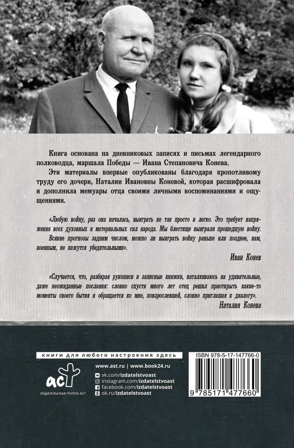 Книга основана на дневниковых записях и письмах легендарного полководца маршала Победы — Ивана Степановича Конева.