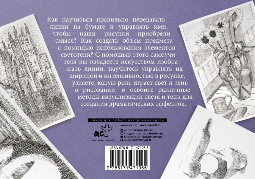 Как научиться правильно передавать линии на бумаге и управлять ими, чтобы наши рисунки приобрели смысл? Как создать объем предмета с помощью использования элементов светотени? С помощью этого самоучителя вы овладеете искусством изображать линии, научитесь управлять их шириной и интенсивностью в рисунке, узнаете, какую роль играет свет и тень в рисовании, и освоите различные методы визуализации света и тени для создания драматических эффектов.