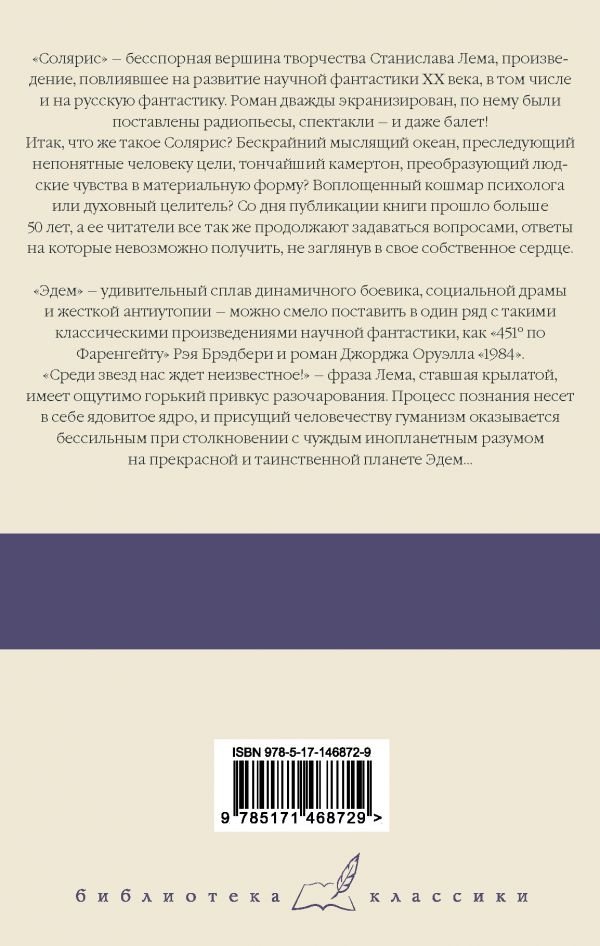 Итак, что же такое Солярис? Бескрайний мыслящий океан, преследующий непонятные человеку цели, тончайший камертон, преобразующий людские чувства в материальную форму? Воплощенный кошмар психолога или духовный целитель? Со дня публикации книги прошло больше 50 лет, а ее читатели все так же продолжают задаваться вопросами, ответы на которые невозможно получить, не заглянув в свое собственное сердце.