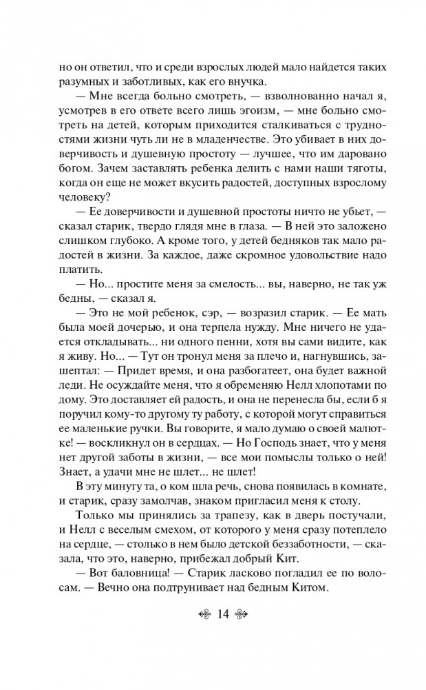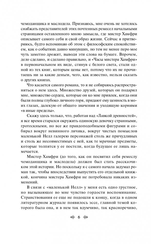 Переплетение реалистического повествования и сказки с элементами готики, "причудливыми", "странными и гротескными" персонажами, мрачными тайнами. В романе о Нелл, маленькой девочке "бесконечно милого нрава", ее деде, выжившем из ума картежнике-мечтателе, и преследующем их жестоком карлике ростовщике Квилпе – вечная тема противостояния добра и зла. Один из самых трогательных романов Ч. Диккенса.