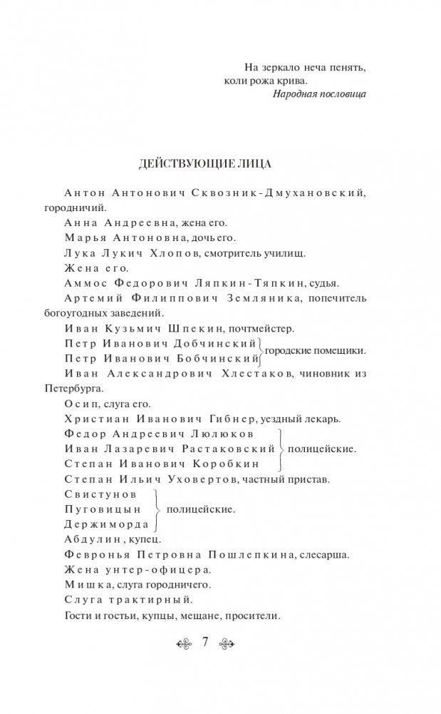 «Ревизор» — одна из лучших русских сатирических комедий. Николай Гоголь «решился собрать в одну кучу все дурное в России и за одним разом посмеяться над всем», объединил реалистическое видение и гротеск, заставив читателей и зрителей хохотать над легко узнаваемыми характерами и ситуациями. Комедия по-прежнему актуальна и любима многими, ведь жадность, глупость, нерадивость и другие пороки человеческой природы остались неизменны.