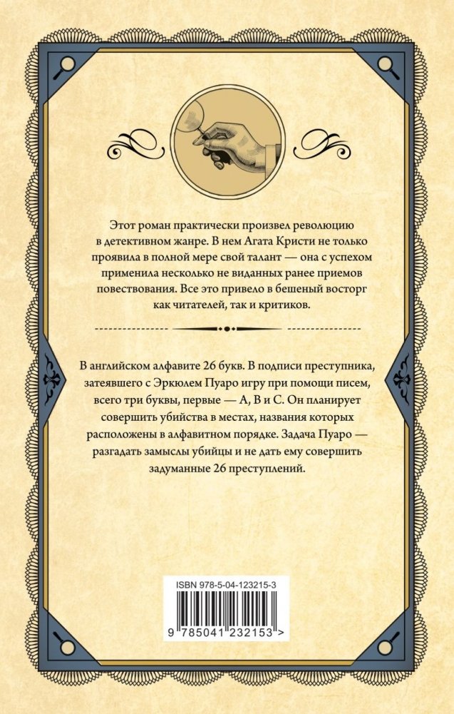 В английском алфавите 26 букв. В подписи преступника, затеявшего с Эркюлем Пуаро игру при помощи писем, всего три буквы, первые, А, B и С. Он планирует совершить убийства в местах, названия которых расположены в алфавитном порядке. Задача Пуаро - разгадать замыслы убийцы и не дать ему совершить задуманные 26 преступлений.