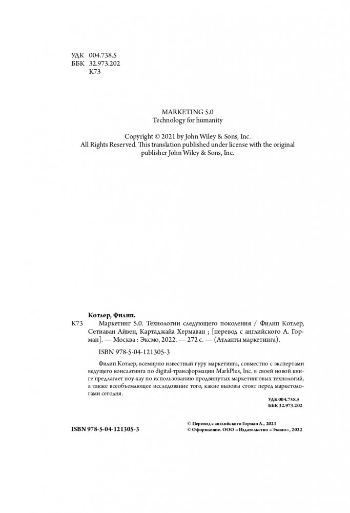 Филип Котлер, всемирно известный гуру маркетинга, совместно с экспертами ведущего консалтинга по digital-трансформации MarkPlus, Inc. в своей новой книге предлагает ноу-хау по использованию продвинутых маркетинговых технологий, а также всеобъемлющее исследование того, какие вызовы стоят перед маркетологами сегодня.