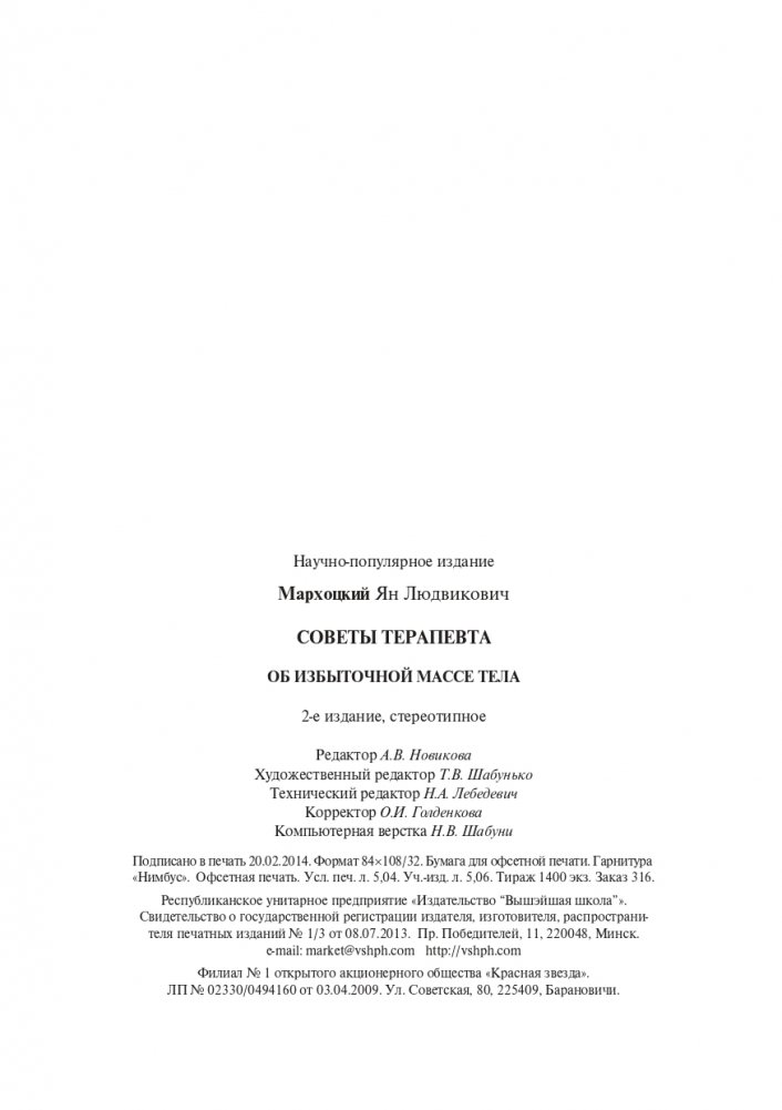 Изложены методы коррекции избыточной массы тела, влияющей на состояние здоровья. Предлагаются способы определения нормальной и идеальной массы тела с учетом пола, возраста и конституции. Даны практические рекомендации по сохранению нормальной массы тела после достижения эффекта в ее снижении до нормы.