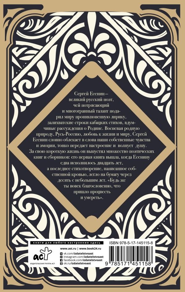 Сергей Есенин - великий русский поэт, чей потрясающий и многогранный талант подарил миру проникновенную лирику, залихватские строки кабацких стихов, вдумчивые рассуждения о Родине. Воспевая родную природу, Русь-Россию, любовь к жизни и миру, Сергей Есенин словно облекает в слова наши собственные чувства и эмоции, тонко передает настроение и волнует душу.