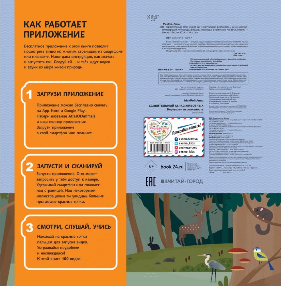 Открой книгу, войди в виртуальный мир животных нашей планеты. Узнай, где они обитают, как выглядят, что едят и на кого охотятся.
