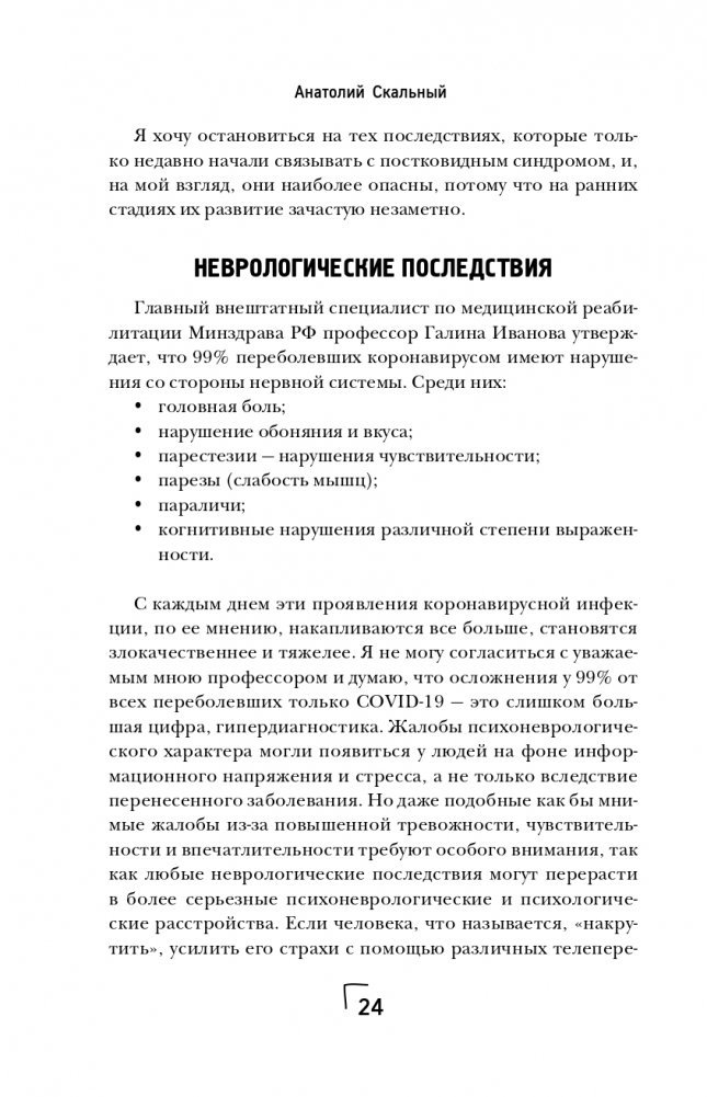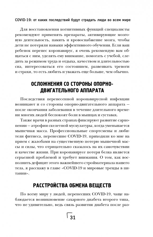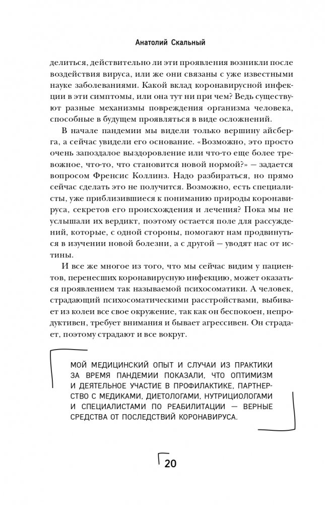 Автор этой книги, доктор медицинский наук, профессор, исследователь и врач с 35-летним стажем, дает простые и подробные советы по коррекции и профилактике потсковидного синдрома с помощью микронутриентов, витаминов и питания. Вы узнаете, какие системы и органы больше всего страдают от коронавируса; на какие симптомы обратить внимание; что делать, чтобы улучшить самочувствие; и как поддержать здоровье и уберечь себя от нового заболевания вирусной инфекцией.
