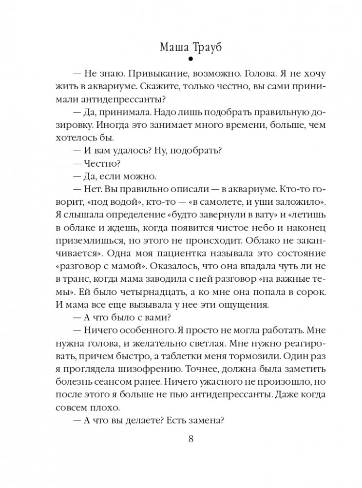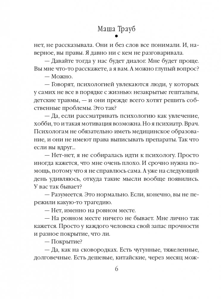 Сапожник без сапог. Такое случается чаще, чем мы думаем. Блестящие учителя оказываются бессильны в обучении своих детей, первоклассные врачи не замечают собственных болезней. Главные герои этой книги заботятся о других, хотя сами нуждаются в помощи. Равнодушие и предательство близких, сложившиеся в молодости нерушимые связи, счастье и горечь воспоминаний, поиск виновных в бедах, принятие и прощение. Врач-психиатр, ведущая прием, оказывается на месте пациента. Рассказ-исповедь становится способом исцеления от ран прошлого и проблем настоящего.