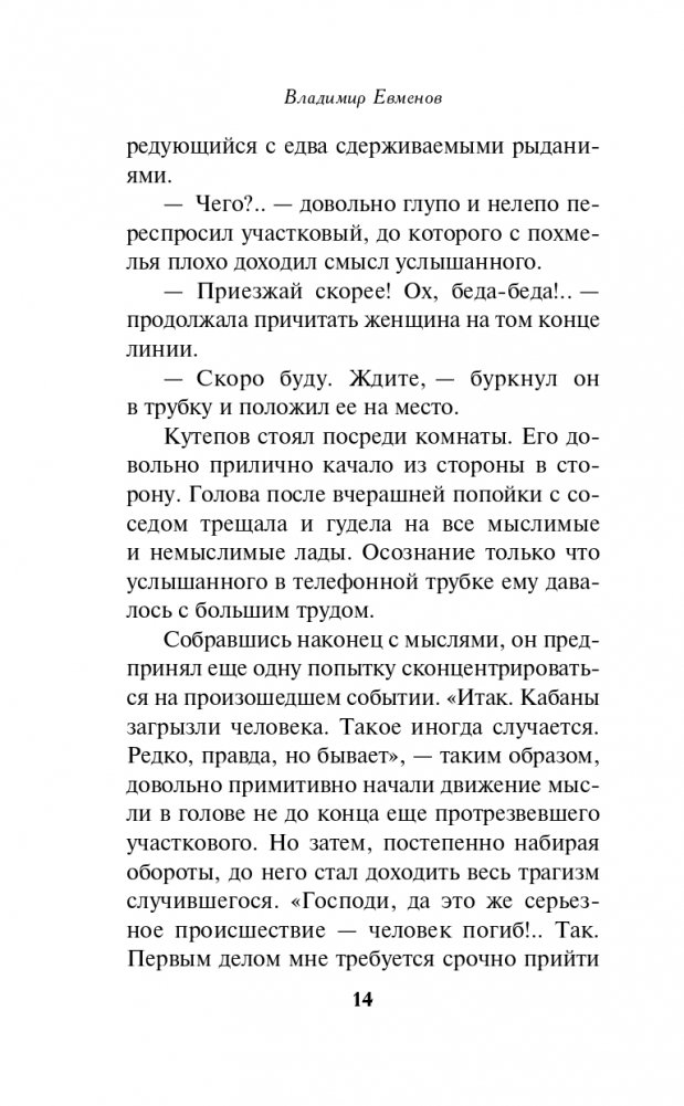 В лесополосе недалеко от деревни дикие кабаны растерзали первокурсницу Нину Кольцову. Об этом свидетельствовали множественные следы копыт, а также обломок клыка, найденный рядом с трупом. Несчастный случай, дело можно закрывать. Но что-то не дает покоя местному участковому Василию Кутепову…