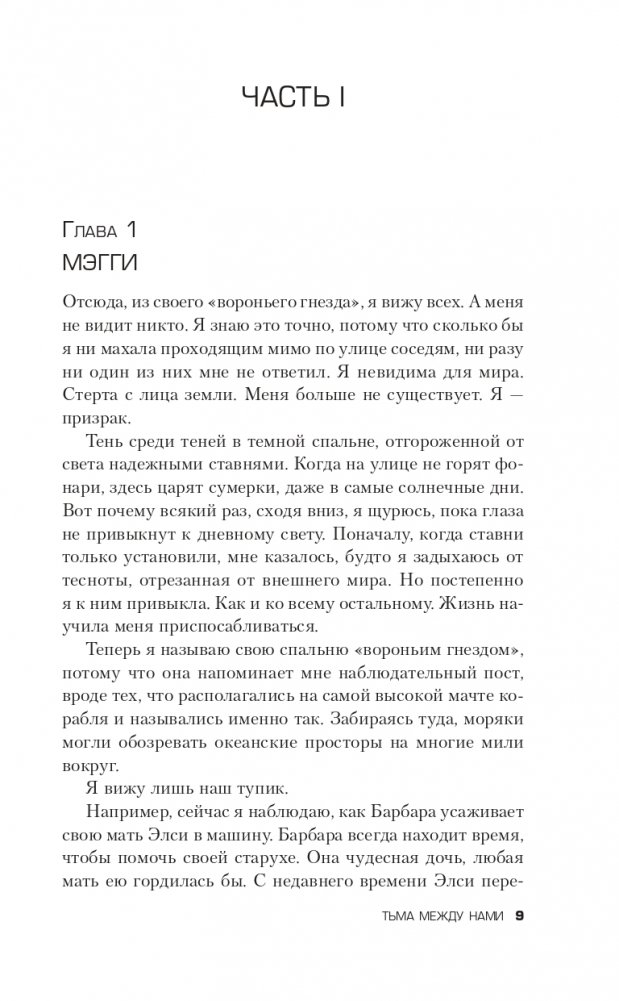 Кажется, расплата Мэгги – ужасна. Кажется, ее вина перед дочерью Ниной – ужасна вдвойне. Тьма пролегла между ними. Каждые два дня женщины ужинают вместе. А потом дочь отводит Мэгги на чердак, в "воронье гнездо", и приковывает цепью к полу. Это – возмездие. Мать сделала то, чего дочь ей никогда не простит. Ни-ко-гда. Пусть до смерти гниет в этой темной каморке с глухими стенами и небьющимися окнами, с тяжелой цепью на лодыжке. Столь велика ненависть дочери.