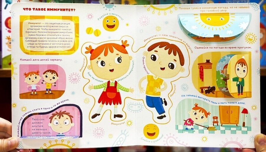 Здоровье - это самое большое богатство, которое может быть у человека! А быть здоровыми нам помогает иммунитет. Книжка со створками "Умные окошки. Иммунитет" познакомит вашего ребенка с маленькими бактериями и вирусами, которые его окружают. Внутри книжка 7 красочных разворотов и 23 створки, открывая которые он получит массу полезной и интересной информации!