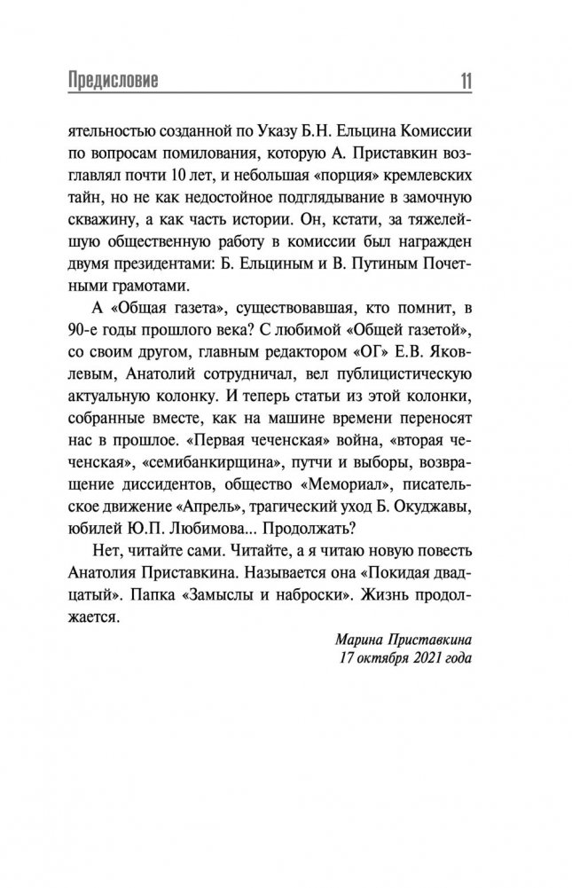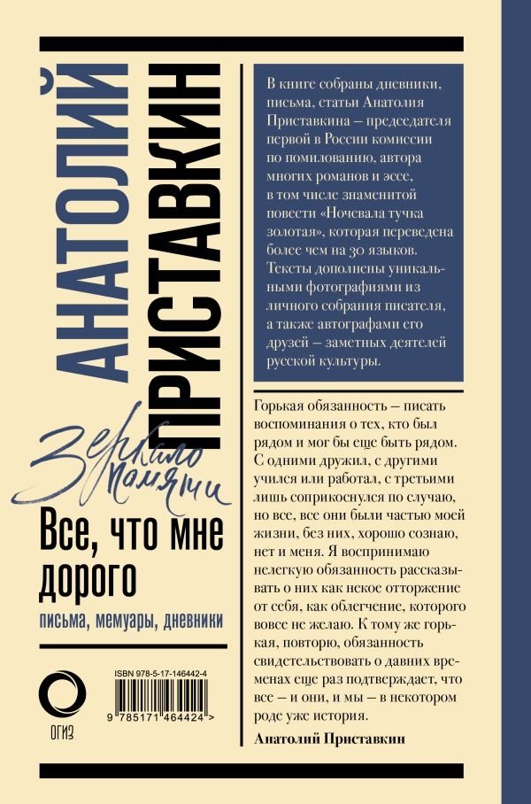 Книга подготовлена к 90-летию со дня рождения Анатолия Приставкина — писателя, автора многих романов и эссе, переведенных более чем на 30 языков мира, в том числе "Ночевала Тучка золотая", председателя первой в России Комиссии по помилованию, Лауреата Государственной премии в области литературы. В сборник вошли его дневники, письма, статьи, а также уникальные фотографии из личного собрания семьи писателя и автографы его друзей, выдающихся деятелей русской культуры.