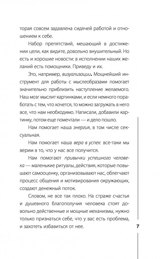 Перед вами простой путеводитель, который вы можете использовать для достижения Успеха в любой, нужной ВАМ сфере жизни. С помощью простых и эффективных приемов, предложенных вам в книге, вы сможете легко выйти на те линии жизни, где все получается. В чем главная особенность этих приемов? Их легкость и универсальность. Я постарался сделать так, чтобы выполнять все упражнения или задания было легко. Чтобы не нужно было никуда ехать, сидеть часами в позе "лотоса" или прилагать какие-то титанические усилия. Читать ее можно начиная с любой понравившейся части. С той, что для вас сейчас актуальнее всего.