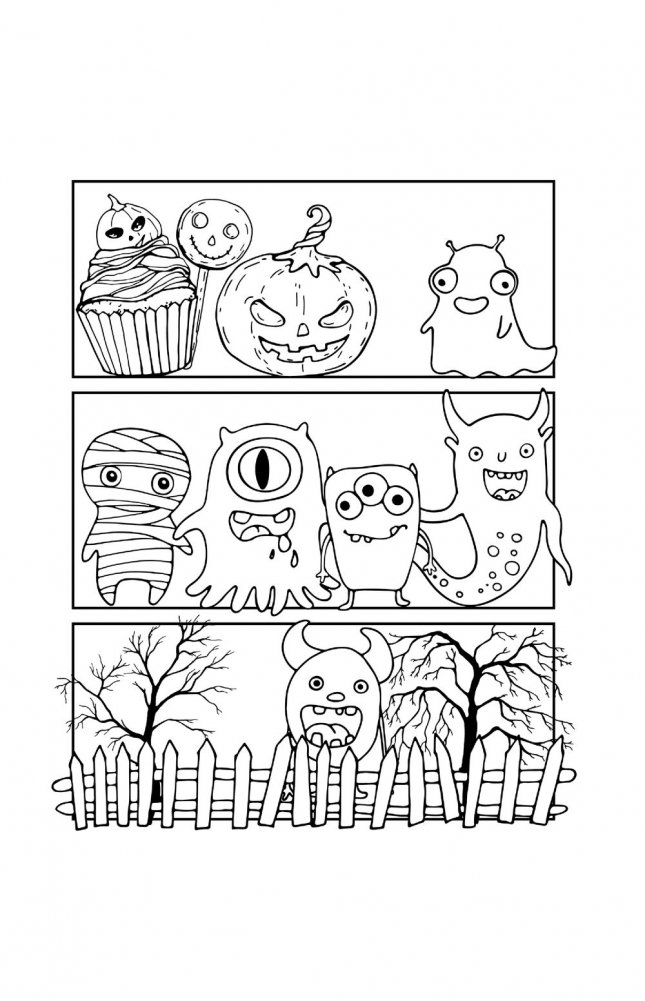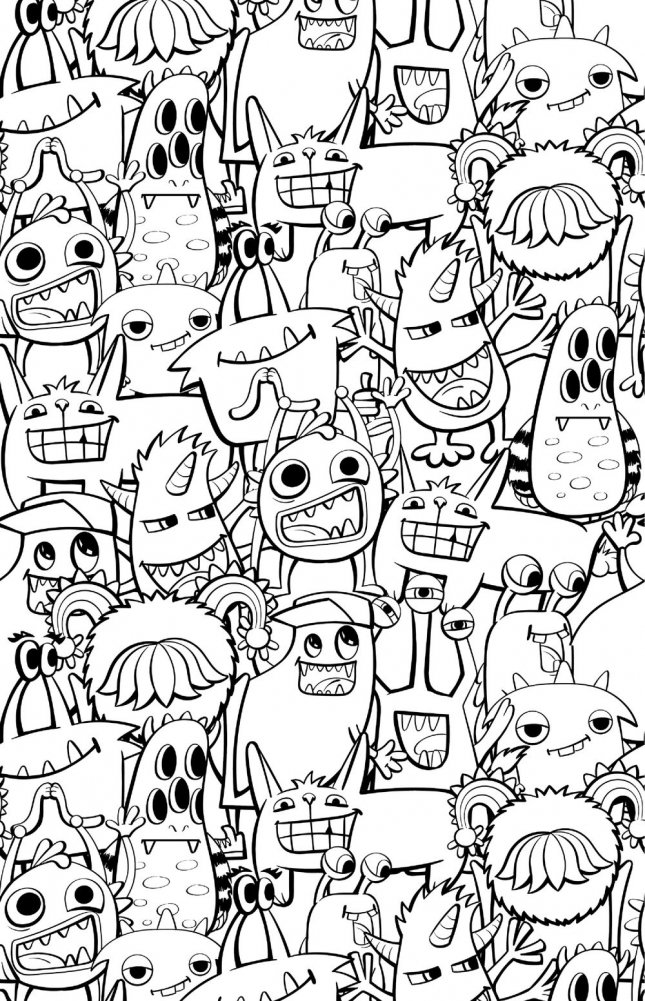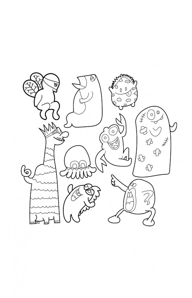 То, что нам показывают в фильмах ужасов, совсем необязательно должно быть страшным и пугающим. Монстрики могут быть милыми, веселыми и забавными. Конечно, иногда они и мрачности наводят, и жути, но персонажи, которые встретятся вам в этой раскраске, скорее всего окажутся дурашливыми шалопаями. А когда вы добавите им цвет, то они и вовсе засияют в другом амплуа. Берите скорее фломастеры и краски — покажем всем. какими могут быть яркими и причудливыми эти монстры!