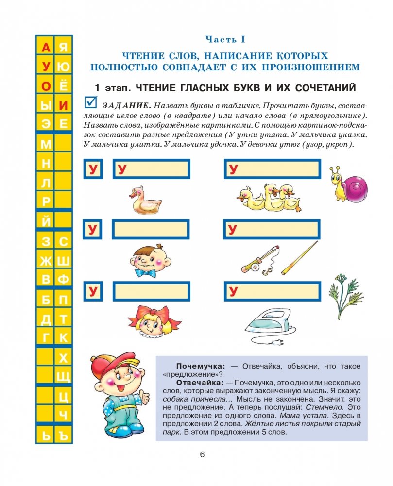 Этот букварь не просто обучит ребёнка чтению, но и поможет избежать характерных ошибок, освоить азы языкознания, введёт в лексикон ребёнка базовые термины русского языка.