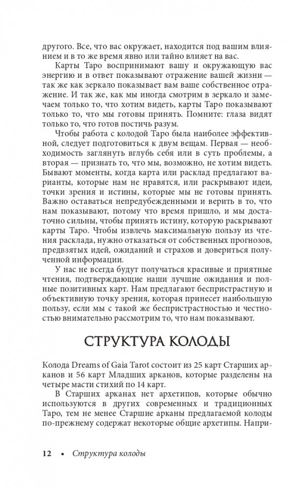 Эта колода сохраняет классическую структуру Таро в виде Старших и Младших арканов, но смело сочетает ее с новыми архетипами, символами и значениями, более подходящими нашему времени.