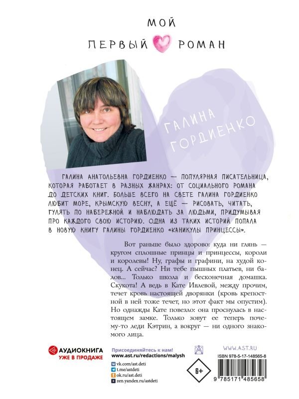 Катя Ивлева — обычная тринадцатилетняя девчонка. Она ходит в школу, скучает на уроках и мечтает о красивой жизни. Однажды Катя узнала, что в роду у нее были дворяне. И если бы не революция 1917 года, сейчас она бы кружилась на балу в пышном платье, а не сидела за партой. "Каникулы принцессы" Галины Гордиенко — это история о том, что наши мечты имеют свойство сбываться. Но так ли это здорово?